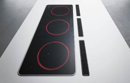 コンロが3つ横並びで、手前スペースも広々。