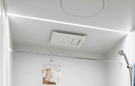 傷に強くはっ水性の高いスゴピカ素材でお手入れ簡単。照明が空間を美しく演出し、くつろぎのバスタイムを。