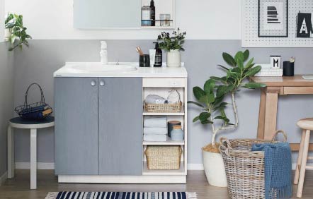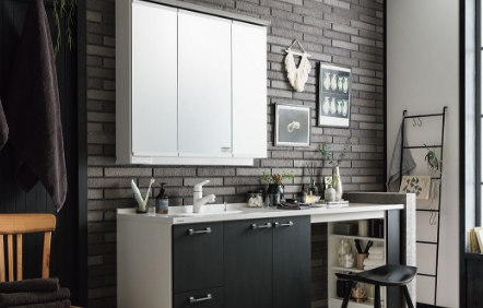 快適さと工夫が詰まった洗面空間。収納充実のキャビネットとスッキリ足元のフロートから選択可能。