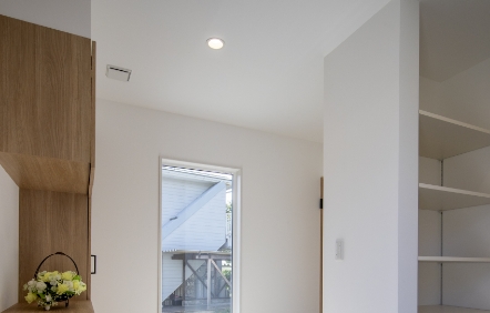 玄関から家中へと使いやすい広々とした収納を計画し、大容量のウォークインクローゼットやパントリーを備えた収納が充実した住まいです。